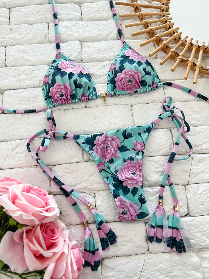 Calcinha Florença Fio Duplo Amarra Fina e Pompom de tecido.
